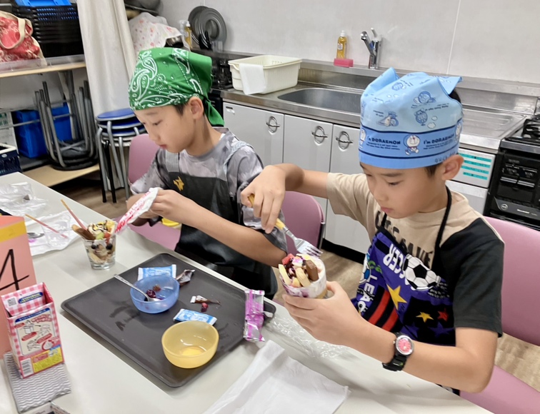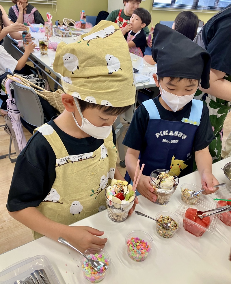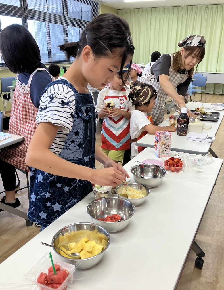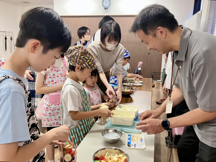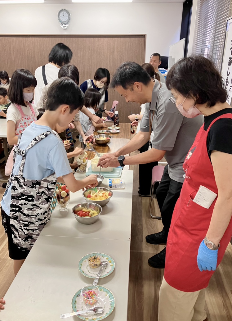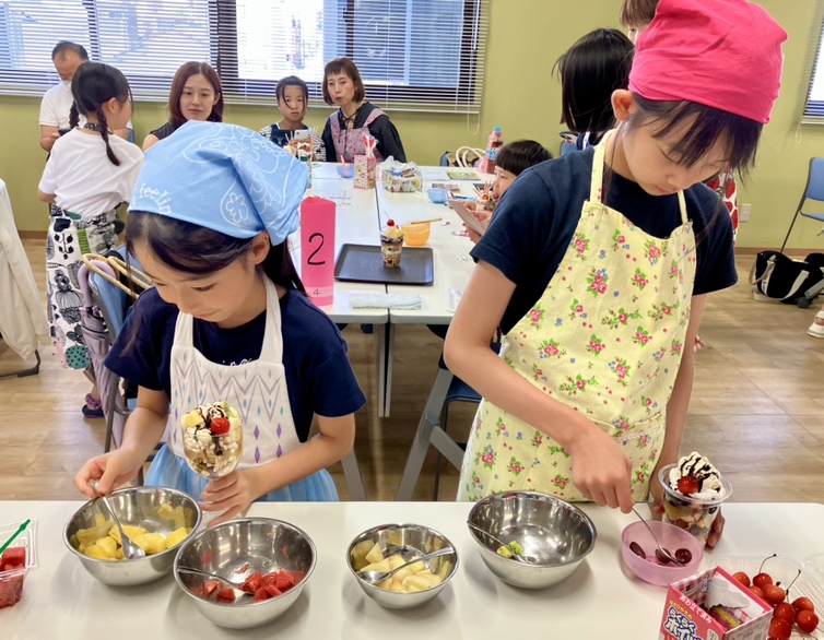 7月13日(日)と20日(日)に「親子で楽しもう♪ カンタン手作りパフェ~地域や環境に優しい食べ物を選んでオリジナルのパフェを作ろう~」を開催しました。今回は、人・社会・環境に配慮する「エシカル消費」をテーマとし、パフェ作り体験を通して、地域や環境に優しい食の選択について楽しく学んでいただきました。当日は「お買い物ミッションカード」を活用し、親子でパフェの食材選びに挑戦。地元の食材や、値引き品・見切り品など、環境や社会に優しいポイントを意識しながら、親子でお買い物をしました。エシカルな食材選びは、楽しく美味しいだけでなく、未来について考え、行動するきっかけとなりました。